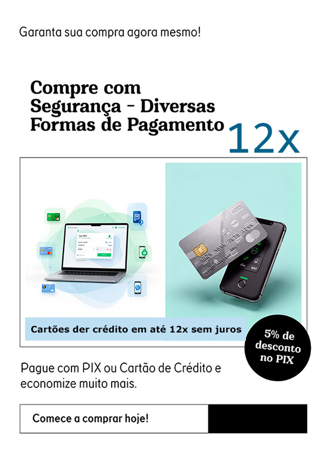 Compre com Segurança - Diversas Formas de Pagamento Cartões de Crédito em até 12x sem juros